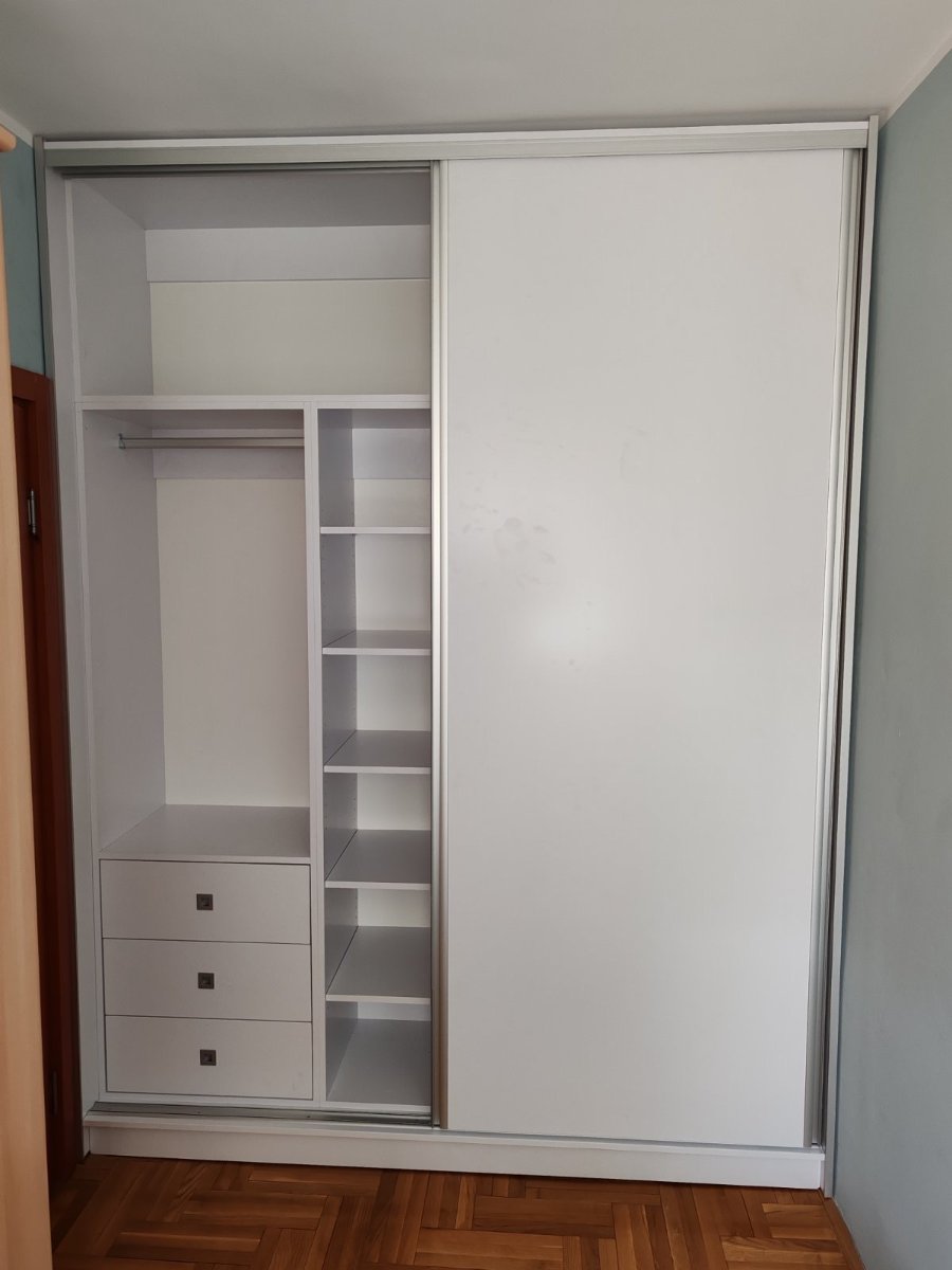 Ovaj klizni plakar izrađen je od kvalitetnih i izdržljivih materijala, u elegantnoj beloj boji koja prostoru daje osećaj čistoće, svetline i urednosti. Zahvaljujući svom klasičnom i bezvremenskom dizajnu, lako se uklapa u različite stilove enterijera i predstavlja praktično rešenje za organizaciju prostora.