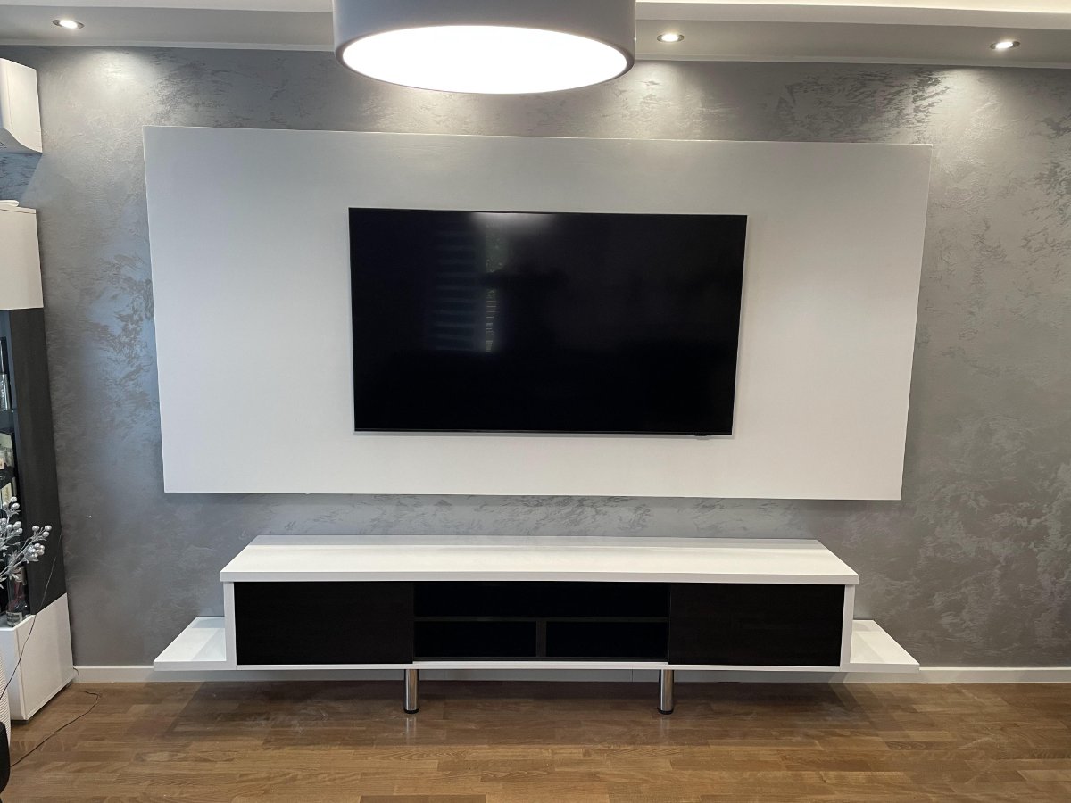 Rezultat je elegantna i moderna TV komoda koja se savršeno uklapa u enterijer dnevne sobe, doprinoseći prostoru sofisticiranom i urednom izgledu.