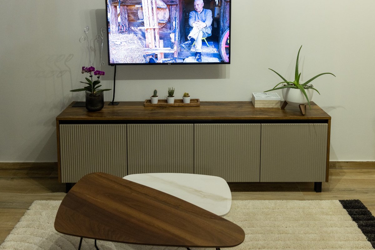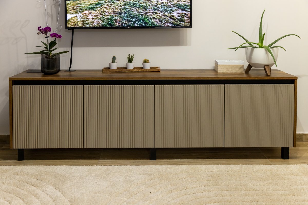 Posebna prednost ove komode je i njena funkcionalnost. U komodu su diskretno integrisani priključci za struju i internet, što omogućava jednostavno povezivanje televizora i drugih multimedijalnih uređaja, bez potrebe za vidljivim kablovima.