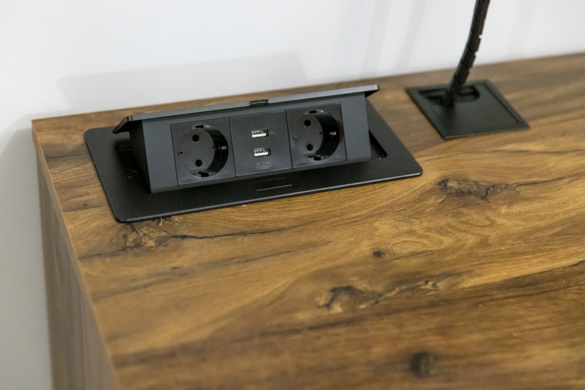 Posebna prednost ove komode je i njena funkcionalnost. U komodu su diskretno integrisani priključci za struju i internet, što omogućava jednostavno povezivanje televizora i drugih multimedijalnih uređaja, bez potrebe za vidljivim kablovima.